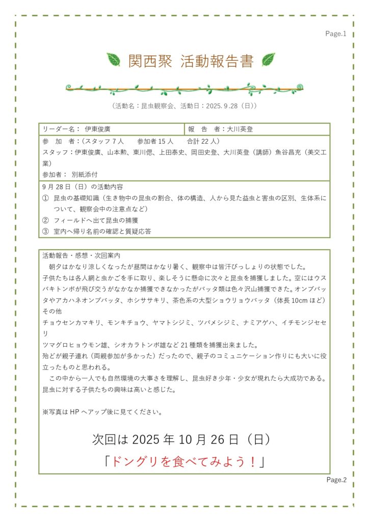 9月28日(日) 大阪府久宝寺緑地で、レッツ久宝探検隊と自然学習ゾーン整備活動を実施しました