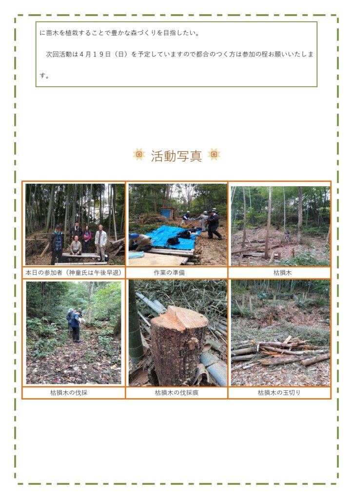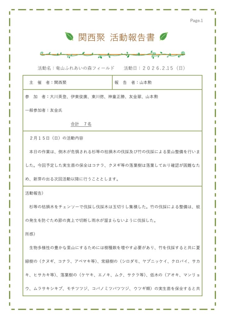 2月15日(日) 交野市奄山ふれあいの森フィールドで定例活動を行いました。